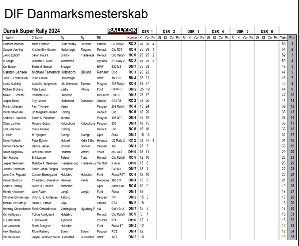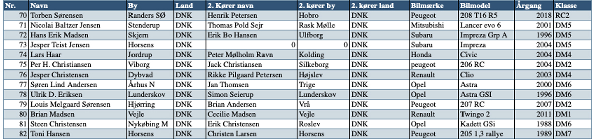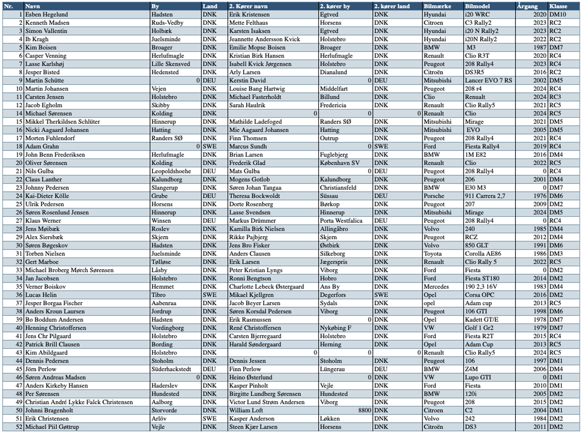 Det er først og fremmest den 4-dobbelte mester Kim Boisen og datteren Emilie Boisen fra Broager, som er stærkt kørende i en historisk BMW M3 fra 1987. Dertil kommer Martin Johansen og Louise Bang Hartwig, Vejen/Middelfart, i en helt ny Peugeot 208 Rally4.